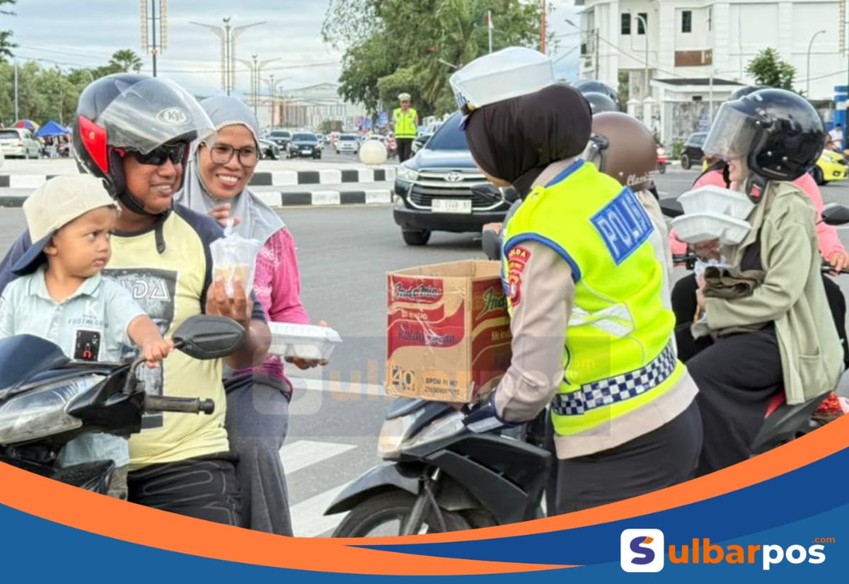Mamuju Ramadhan Penuh Kepedulian, Ditlantas Polda Sulbar Bagi Takjil Sambil Kampanyekan Keselamatan