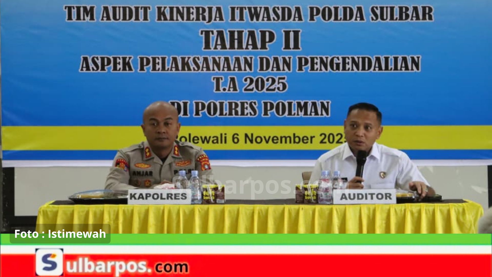 “Kami menyambut baik kegiatan audit ini sebagai bagian dari upaya peningkatan kualitas kinerja di lingkungan Polres Polman. Mohon arahan, bimbingan, serta masukan dari tim auditor untuk perbaikan pelaksanaan tugas kami ke depan,” ujar Kapolres.