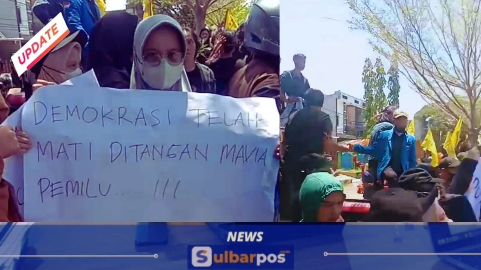 Sulbarpos.com, Polewali — Massa aksi yang merupakan gabungan HMI Cabang Polman dan PMII IAI DDI Polman bersama sejumlah masyarakat memenuhi tempat rekapitulasi suara Komisi Pemilihan Umum (KPU) Polman, Sabtu (2/3/2024).
