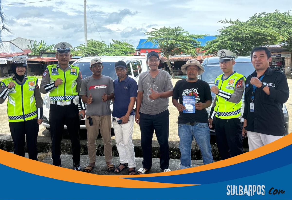 Sulbarpos.com, Mamuju – Personel Ditlantas Polda Sulbar menggelar kegiatan penyuluhan dan pembagian leaflet dalam rangka Program Pembinaan dan Keselamatan Masyarakat Lalu Lintas kepada pengendara ojek pangkalan dan sopir mobil travel di dua lokasi strategis di Kelurahan Karema Mamuju, Senin (5/1/26).