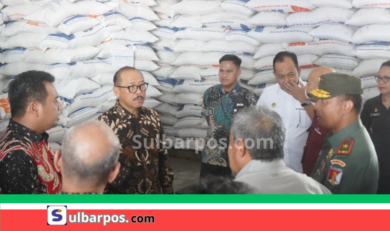 Dalam peninjauan tersebut, Gubernur Suhardi Duka didampingi unsur Forum Koordinasi Pimpinan Daerah (Forkopimda) Sulbar. Rombongan secara langsung memasuki gudang logistik Bulog Mamuju untuk memastikan kesiapan stok, khususnya beras sebagai komoditas utama masyarakat.