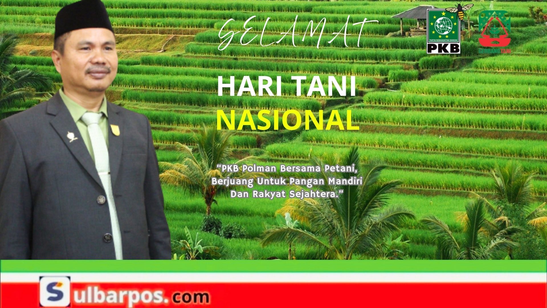 POLEWALI MANDAR, Sulbarpos.com — Ketua Dewan Pimpinan Cabang Partai Kebangkitan Bangsa (DPC PKB) Kabupaten Polewali Mandar, yang juga Wakil Ketua DPRD Polman, H. Amiruddin, SH, menyampaikan selamat memperingati Hari Tani Nasional 2025 yang jatuh pada tanggal 24 September.