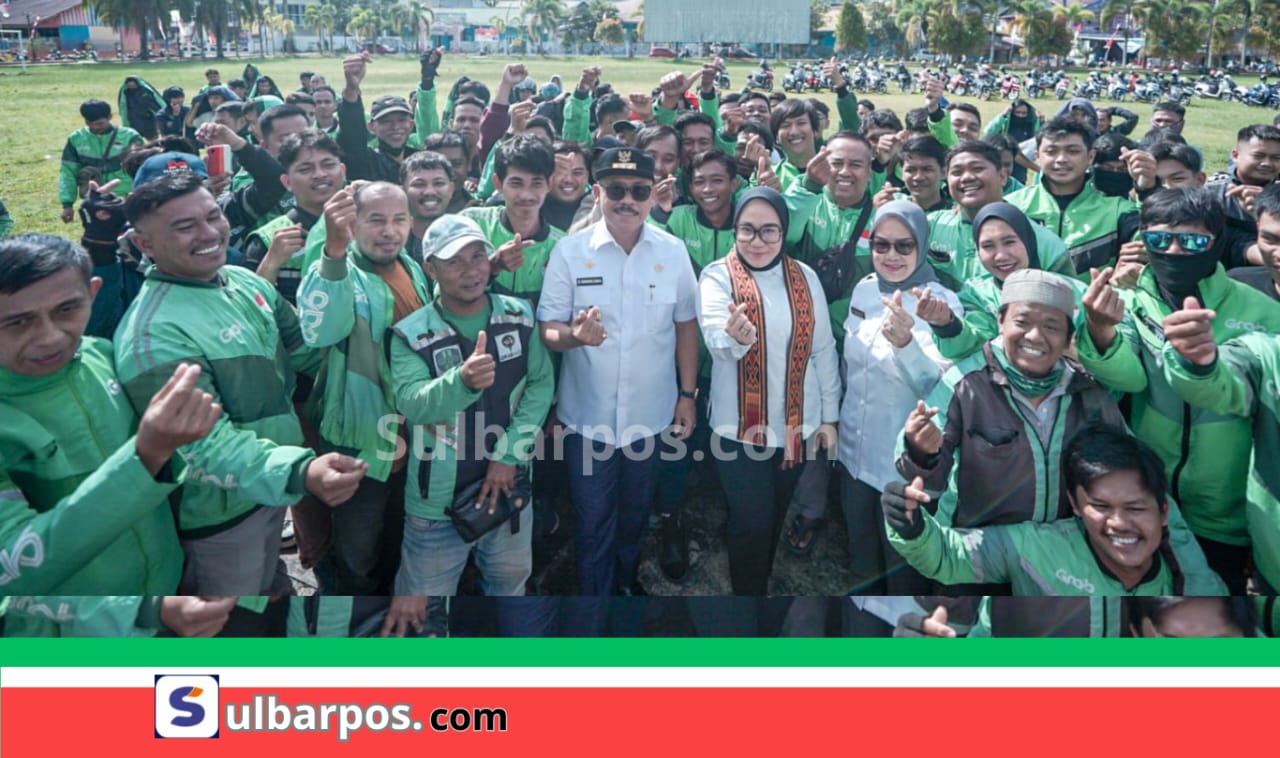 Sulbarpos.com, Mamuju — Gubernur Sulawesi Barat Suhardi Duka (SDK) bersama Bupati Mamuju Sitti Sutinah Suhardi turun langsung membagikan beras gratis kepada ratusan pengemudi ojek online (Ojol) di Lapangan Ahmad Kirang, Rabu (3/9/2025).